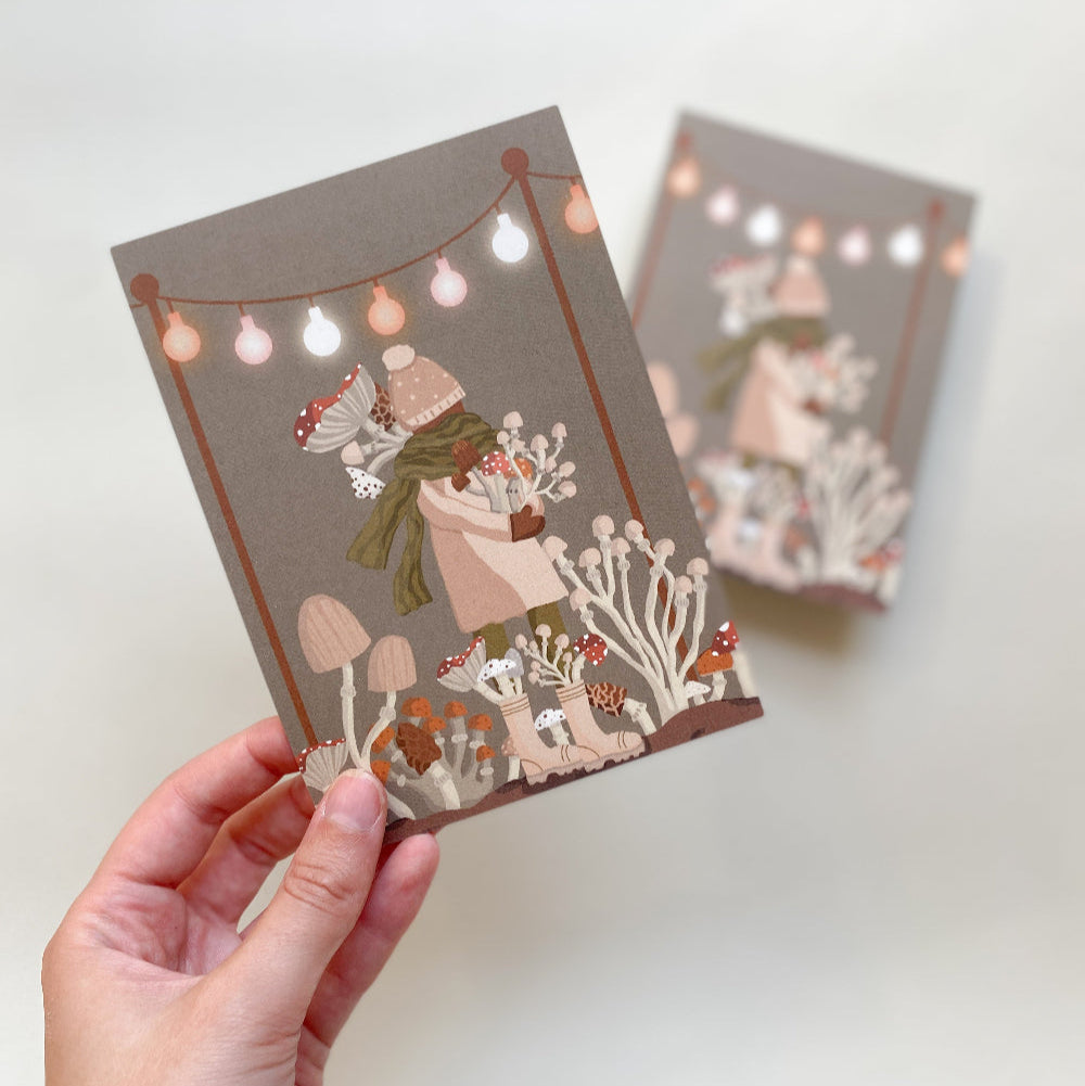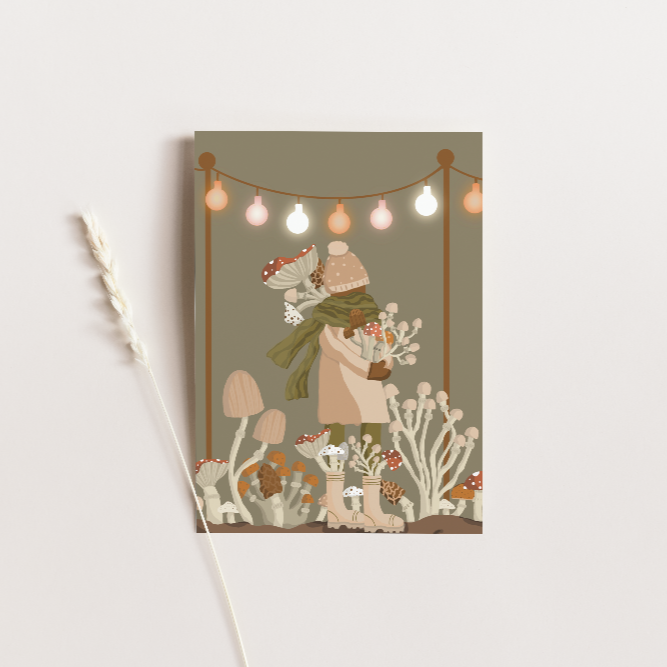 Postkarte "Herbstliche Pilzsammlerin" – Mit Liebe zum Detail