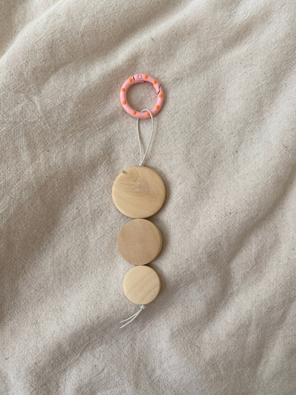 Unser schlichter Anhänger ist das perfekte Accessoire für all diejenigen, die stilvolle Einfachheit lieben. Der Anhänger besteht aus drei hochwertigen Holzperlen, die auf ein helles Elastikband aufgefädelt sind. Er wird an einem runden Metallring befestigt, an dem du noch weiteren Platz für deine Schlüssel oder Anhänger hast. Ein perfektes Accessoire für deine Tasche, deinen Schlüsselbund oder als praktisches Detail für dein Heim.